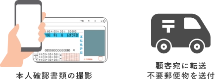 お申し込み後に送付される転送不要郵便のお受け取りが確認できない場合、お申し込みがキャンセルになる、もしくは別途本人確認の手続きを実施いただく必要があります。